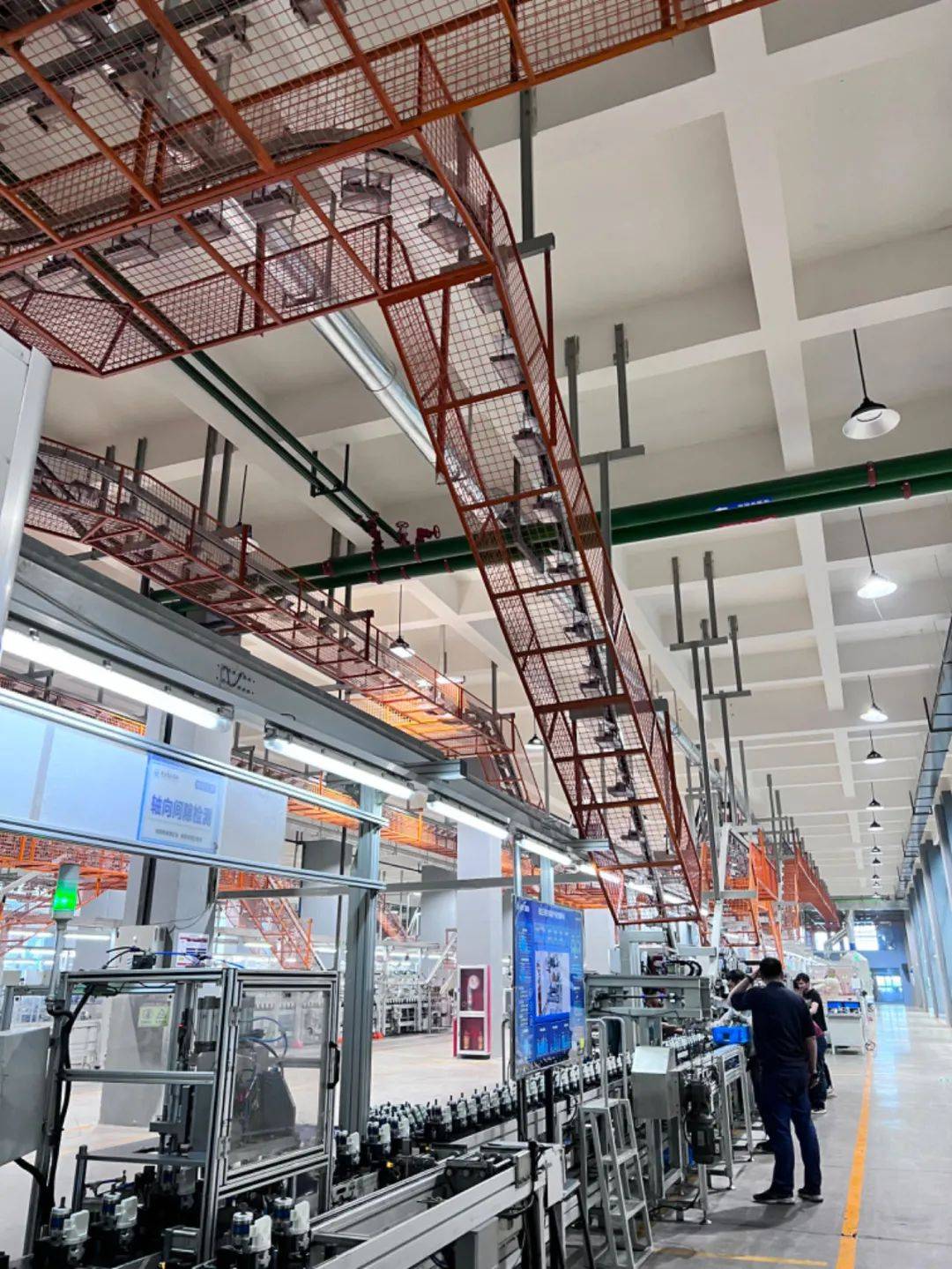 除了坐褥修立除表,全体工场的筹划,坐褥线的流程安排,都是遵守顶级智能修筑工场的规格安排。正在坐褥车间内,往往会看到正正在坐褥历程中的压缩机正在电梯前“恭候进电梯”从而进入下一道工序。而空中的产物运输带也在在可见。
